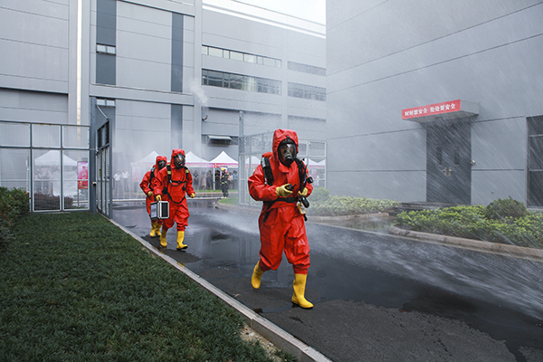 隨著演練總指揮常州四藥制藥有限公司董事長、總經(jīng)理屠永銳一聲令下,演練正式開始。新藥廠103車間北區(qū)一生產(chǎn)線反應(yīng)釜泄漏著火,前期處置、報警響應(yīng)、警戒疏散、火災(zāi)撲救、工藝處置、醫(yī)療救護(hù)、現(xiàn)場恢復(fù)等演練科目一一展現(xiàn)在觀眾眼前。通過演練檢驗(yàn)和完善常州四藥制藥有限公司應(yīng)急預(yù)案,提升應(yīng)急處置能力。通過演練提高了員工對應(yīng)急救援的熟練程度。消防東南中隊(duì)在現(xiàn)場迅速針對危險品險情,結(jié)合公司實(shí)際情況 有針對性進(jìn)行了現(xiàn)場處置,環(huán)保應(yīng)急車輛在現(xiàn)場布陣,防止污染擴(kuò)散,空氣現(xiàn)場檢測。