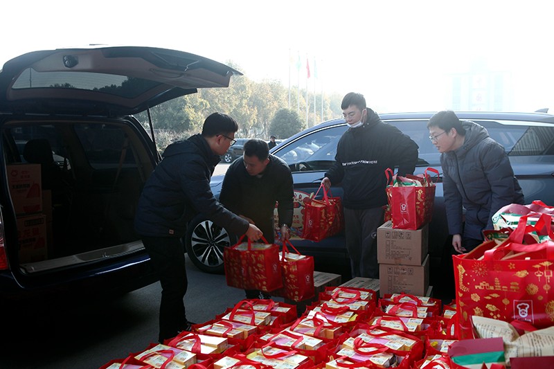 12月29日上午9點(diǎn)半,四藥公司團(tuán)委青年團(tuán)員、常州東安五菱寶駿汽車(chē)有限公司公司職員、常州日?qǐng)?bào)社常州晚報(bào)周末關(guān)愛(ài)記者兵分多路,分別走進(jìn)天寧區(qū)清涼東社區(qū)、浦北社區(qū)和武進(jìn)區(qū)喜盈門(mén)社區(qū),為2021年度報(bào)道過(guò)的347戶困難家庭送上了精心準(zhǔn)備的包含米、面、油以及年貨在內(nèi)的大禮包。